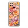 Полупрозрачный дизайнерский силиконовый с усиленными углами чехол для Xiaomi Redmi 10C Цветы и бабочки