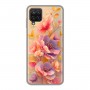 Полупрозрачный дизайнерский силиконовый с усиленными углами чехол для Samsung Galaxy A12 Цветы и бабочки