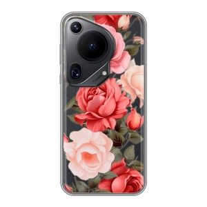 Полупрозрачный дизайнерский пластиковый чехол для Huawei Pura 70 Ultra Розовые розы арт: 83134-22162