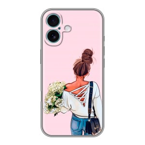 Дизайнерский чехол для Iphone 16 Plus Девушка и букет