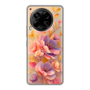 Полупрозрачный дизайнерский пластиковый чехол для Tecno Camon 30 4G Цветы и бабочки арт: 83099-22426