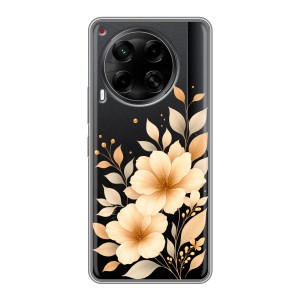 Полупрозрачный дизайнерский пластиковый чехол для Tecno Camon 30 4G Листья и золото арт: 83099-22427