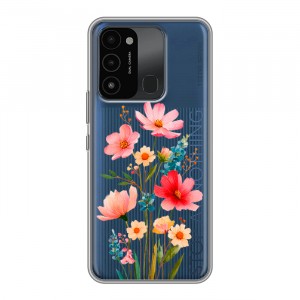 Дизайнерский силиконовый с усиленными углами чехол для Tecno Spark 8C Голубые цветы арт: 81213-22140
